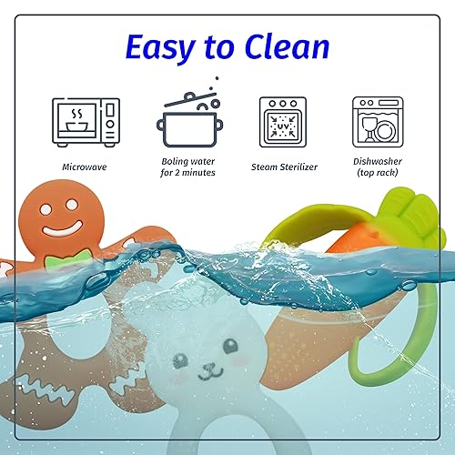 Silicone Pacifier teether Toys for Babies 0-6 and 6-12 Months – Package of 4 Baby teethers - Pain Relief – Infants and Toddlers. Safer Than Plastic - Soft and Flexible - Easier to Clean