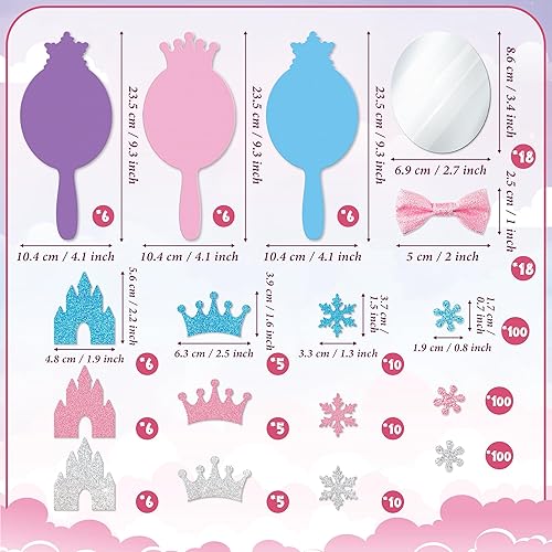 BeYumi Princess Foam Mirror Craft - 18 Pack DIY Decorate Your Own Princess Mirror Craft Kits for Kids Unbreakable Kids Mirrors for Girls Party Decoration Birthday Supplies Gift