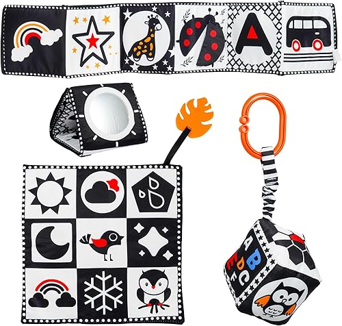 Black and White High Contrast Baby Toys 0-6 6-12 Months, Soft Book with Teether, Newborn Infants Tummy Time Toys, 0-3 3-6 Month Sensory Visual Stimulation, Montessori Learning Essentials