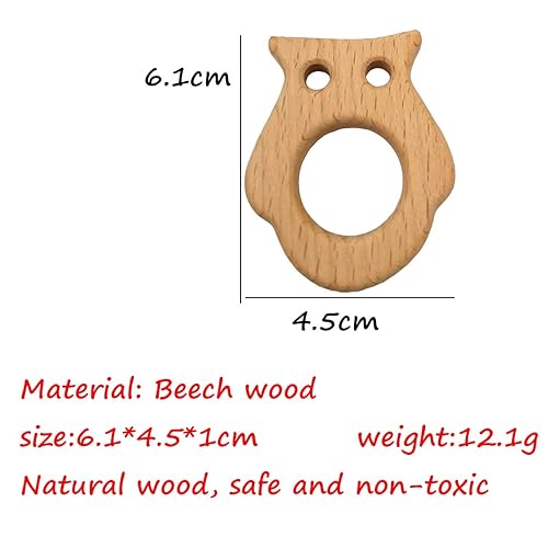 5pcs Lovely Cartoon Wood Owl Teething Pure Natural Animal Teether Shape Toy Beech Wooden Handmade Pattern DIY Jewelry Making Necklace Pendant Accessory (Owl)
