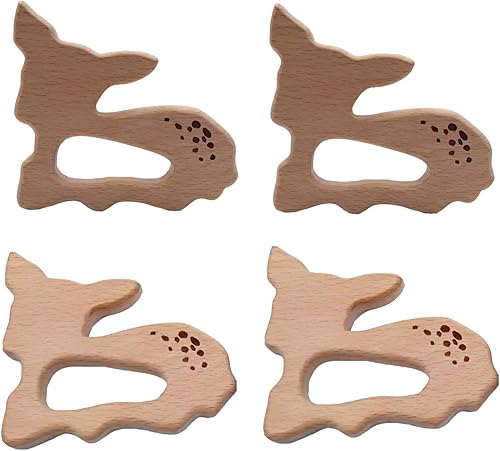 10pcs Natural Wooden Sika deer Teething Pendant Pure Natural Beech Wood Animal Teether Shape Handmade Home Decoration Accessory (Sika deer 10pcs)