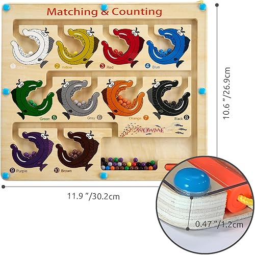Matching and Counting Wooden Toy - Colorful Fish Design Magnetic Maze for Kids Ages 3-5,Montessori Color Sorting Puzzles Game for Kid