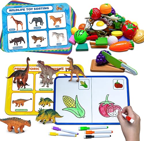 Sorting Toys for Toddlers,3 in 1 Learning Education Sorting Games Cutting Fruit Toys Toddler Coloring,Fine Motor Montessori Preschool Classroom Sensory for 2+ Year Old.
