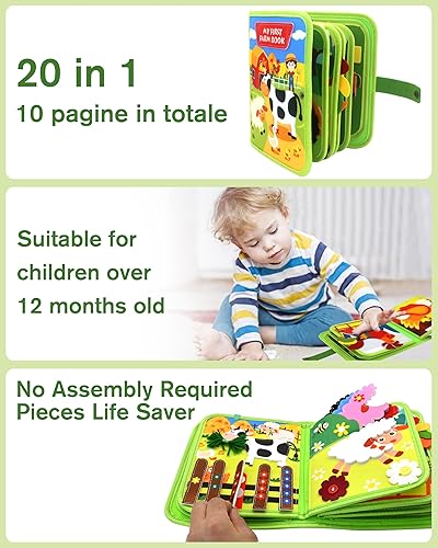 Meafeng Busy Book for Toddlers 1-3 – Montessori Toys Busy Board for 1 2 3 Year Old Boys Girls, Preschool Educational Travel Quiet Activity Book with Life Skills, Sorting, Matching, and Cognitive Games