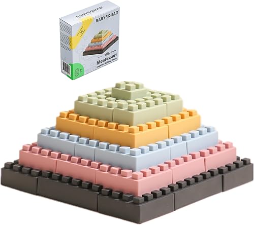 BabySquad Montessori Cognitive Building Blocks For Toddlers 3-5, 5 Colors Building Bricks With 20 Food Grade Silicone Stacking Blocks, Baby Blocks For Teething, Building Toys For Toddler Birthday Gift