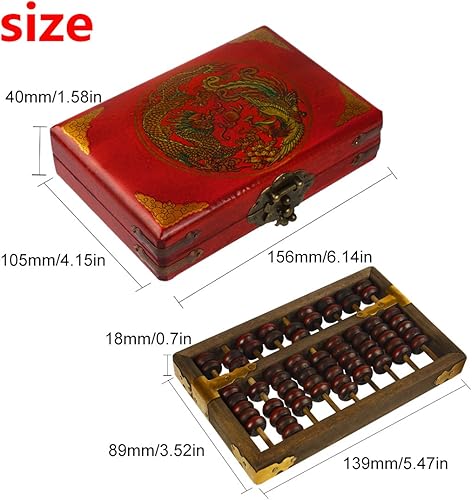 Larcele 9 Column Classic Wooden Abacus with Vintage Leather Box, Soroban for Study, Home Decoration, Aging Treatment SP-01