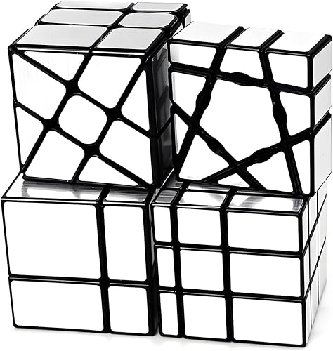 AI-YUN Mirror Cube Set, Speed Cube Set of 4 Pack, 1x3x3 Ghost Cube, 2x2 3x3 Mirror Blocks, 3x3 Windmill Cube, Brain Teasers, Puzzle Toys, Silver