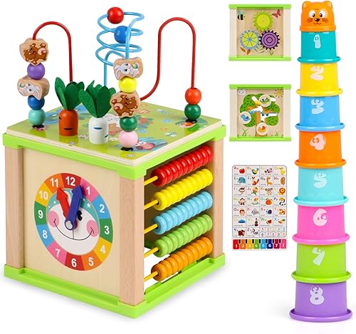 Wooden Activity Cube,Montessori Toys Gift Set for 12+ Months Boys & Girls,Educational Learning Toys for Toddlers Age 1+,First Birthday Gift for Baby