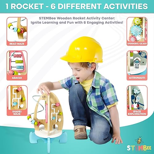Space Rocket Wooden Activity Cube for Toddlers 1-3 - Includes Colorful Bead Maze for Montessori Sensory Development. Fun Toy Activity Center for Baby Boys & Girls. Excellent First Birthday Gift