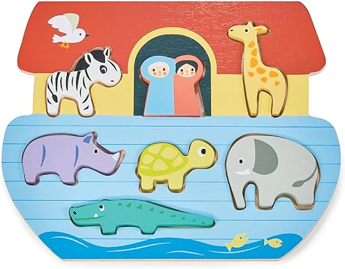 Mentari Toys - Shape Sorting Ark Tray - 8pc Shape Sorting Noah’s Ark Wooden Puzzle for Toddlers - Learning Toy with Vibrant Illustrations - Improve Hand-Eye Coordination and Visual Perception - Age 2+