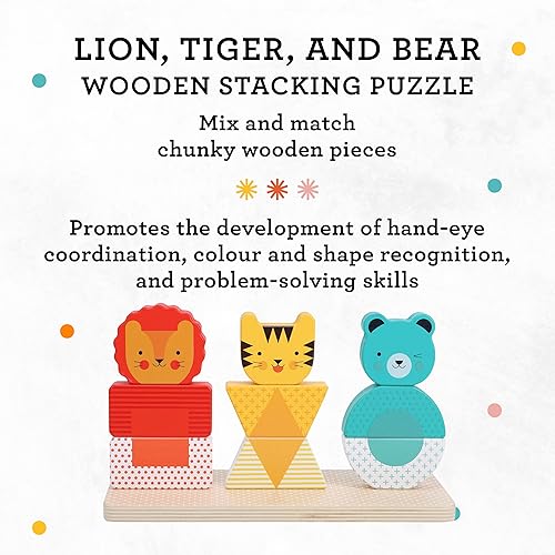 Petit Collage: Wooden Stacking Puzzle, Lion, Tiger, and Bear | Mix and Match Puzzle with 3 Stacks |Includes Guide Cards for Color and Shape Matching | Great for Ages 18 Months +