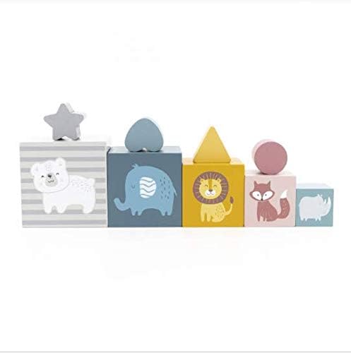 Geometric Wooden Boxes | Blocks Stacker, Stacking & Nesting Educational Tower with Shapes, Pictures of Animals and Numbers for Toddlers