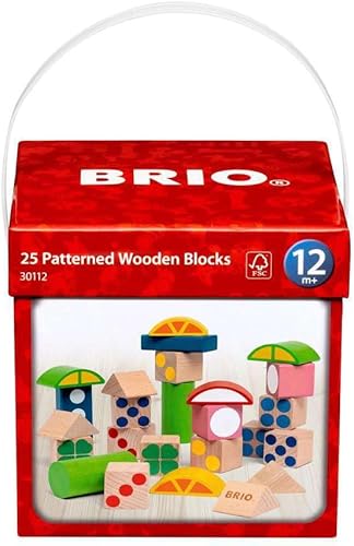 BRIO 25 Patterned Wooden Blocks - Educational Learning Toys for Toddlers Age 12 Months Up (Kids 1 Year Old)