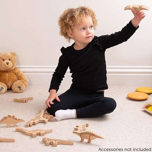 TickiT Wooden Dinosaur Blocks | Set of 10 | Ages 10m+ | Open Ended Pretend Play Toy for Babies and Toddlers | Encourage Imagination