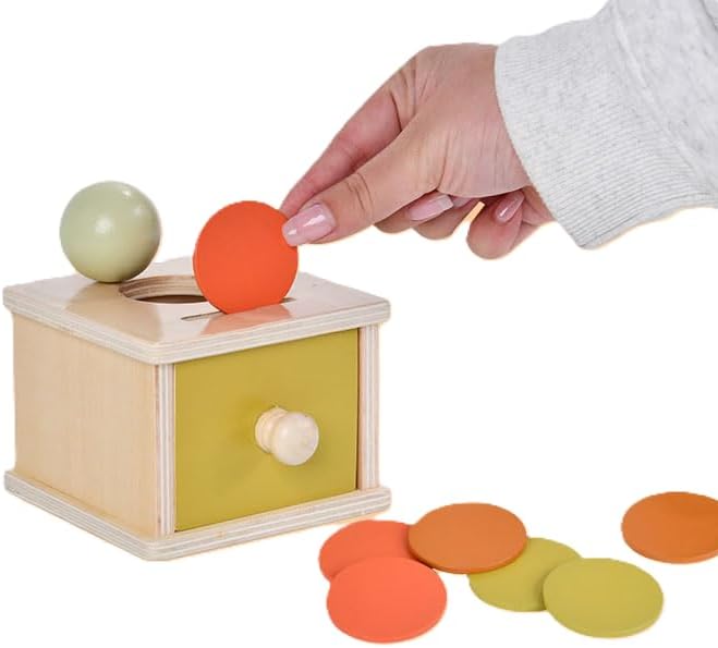 Practical Life Piggy Bank Math Coin & Ball Dropping/Posting Push/Pull Toy Sorting Game Box Pincer Grasp Toy Infant/Toddler/Primary Classrrom Educational Object Permanence 3-6 Years