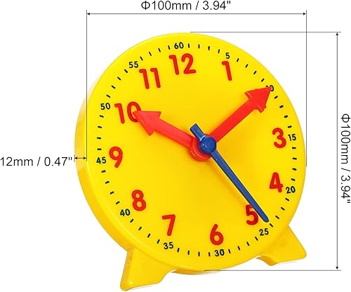 PATIKIL 4 inch Teaching Clock, Learn Clock Learning Tell Time Analog Clock Demonstration Clock 12 Hour 3 Pointers Geared Movement for Classroom Teacher, Yellow