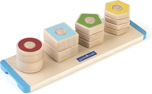 Guidecraft Colorful Count and Twist Geometric Shapes - Wooden Educational and Learning Toys for Kids, Sorting and Matching Toy Set