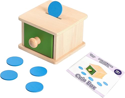 Montessori Wooden Coin Box with Drawer for Baby 18+ Months, Coin Sorter Fine Motor Toys for Kids, Motessori Classroom Learning & Educational Resources Toys Gifts
