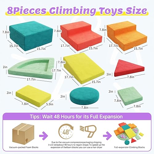 QUCHI Toddler Climbing Toys Indoor, Baby Climbing Blocks, 7-Piece Soft Foam Climbing Blocks Set, Baby Climbing Toys, Toddler Playtime Corner Climber Foam Play Gym for Climbing Crawling and Sliding