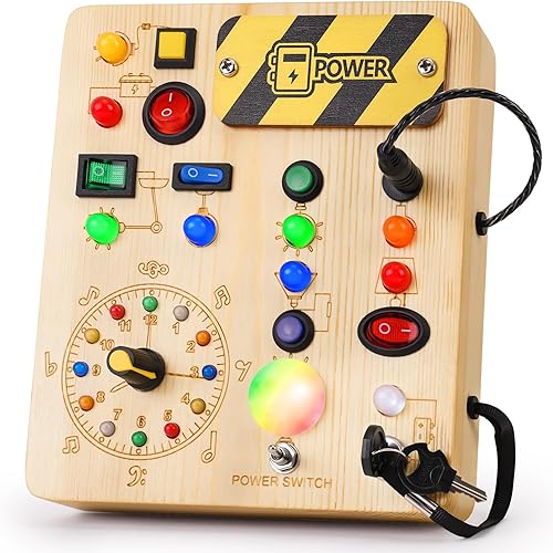 Busy Board with Led Light, Montessori Toys for 1-3 Years Old Boys Girls Wooden Toddler Toys Birthday Gift Educational Toys for 1+ Year Old, Toddler Travel Toy Sensory Toys for Kids with Autism