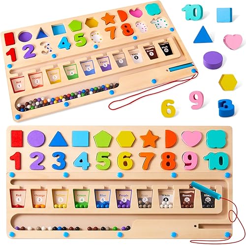 3 in 1 Montessori Toys for 3+ Year Old, Educational Magnetic Color and Number Maze, Shape & Number Wooden Puzzle Sorting Toys for Toddlers, Preschool Learning Activities Classroom Must Haves