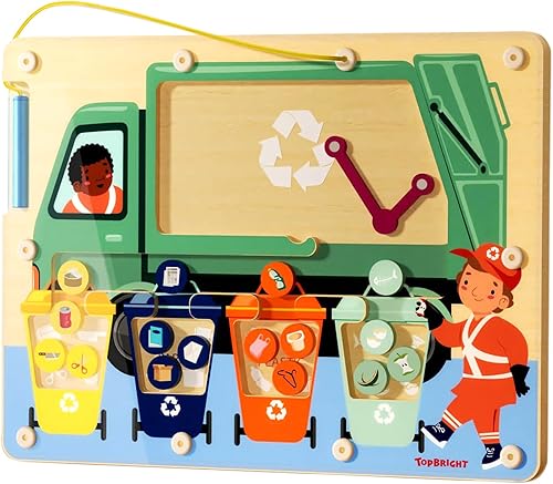 TOP BRIGHT Magnetic Color Maze Sorting Game Montessori Toys for 3+ Year Old, Wooden Garbage Recycling Game Toddler Travel Toys Fine Motor Skills for Boys Girls