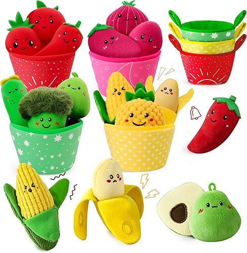 Montessori Baby Sensory Toys – 16 PCS Plush Fruit & Veggie Color Sorting Play Food with Crinkle & Rattle, Baby Toys 6-12 Months, Learning Toys for 1 Year Old Boys Girls Gifts