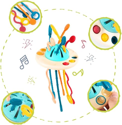 Kirro Funny Puller Montessori Pull String Toy – Food Grade Silicone Pull String Toy for Babies 18+ Months –Toddler Busy Toy for Car, Airplane, Home – Fun and Educational Sensory Toys for Toddlers 1-3