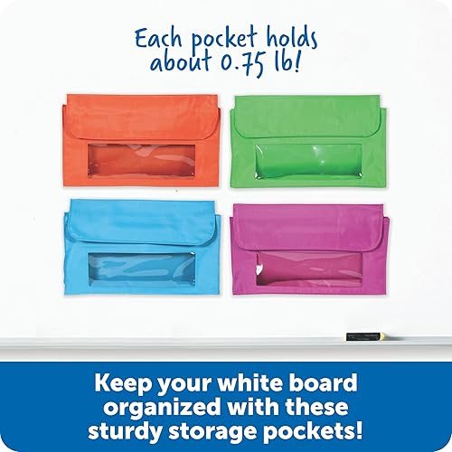 Learning Resources Magnetic Storage Pockets, Set of 4 in 4 Colors,Whiteboard Accessory Case, Classroom Organization, Back to School Supplies,Teacher Supplies