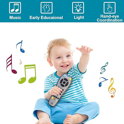 Kids Realistic TV Remote Control with Soft Light and Sound, Early Educational Learning Remote Toy with 3 Different Language, Musical Remote Toy for 6 Months+ Toddlers Boys or Girls