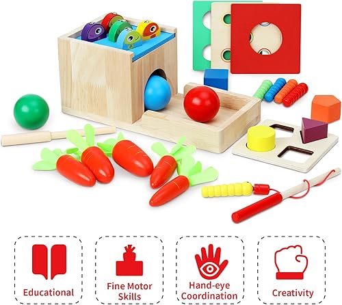 5 in 1Wooden Montessori Toys Toddlers Play Kit,Object Permanence Box,Carrot Harvest,Educational Learning Motor Skill Toys for Kids Ages 3-8