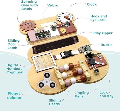 Busy Board for Toddlers - Activity Board Bear Shaped Montessori Toys for Kids - Sensory Stimulating Car & Airplane Travel Toys for Toddlers, Quiet Learning Activities for Autism