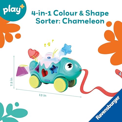 Ravensburger Play+ Colour & Shape Sorter – Chameleon | 3-in-1 Shape Sorting & Pull-Along Toy | Encourages Early Learning & First Steps | 6 Months and Up