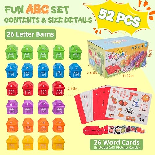 Alphabet Learning Toys for Kids 3+―ABC Barn Sorters with 260 Flash Cards, Montessori Preschool Learning Activities, Uppercase & Lowercase Letter Color Sorting and Matching Educational Game for Toddler