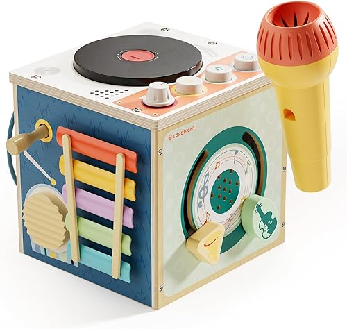 TOP BRIGHT Musical Activity Cube, Montessori Toys for 2 3 4 Year Old Toddlers, Baby DJ Table with Songs, Baby Activity Center with Bead Maze, First Birthday for Girls Boys 18 Months+