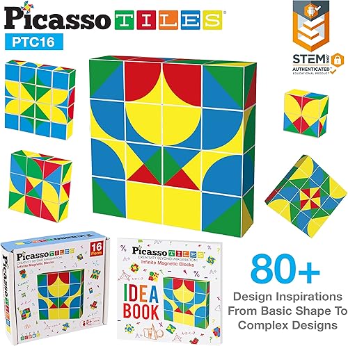 PicassoTiles 1" Infinite Magnetic Puzzle Game Magic Pixy Cube Puzzles Brain Teaser Set w/Free Ideabook Kids Toy Magnet Pattern Block Matching Card Challenge Toys Inspiration STEM Learning PTC16
