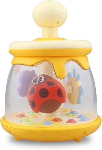 Baby Push and Spin Activity Toy, Interactive Tumbling Ladybug, Educational Learning Toy for Toddlers 6 Months+ (Yellow)