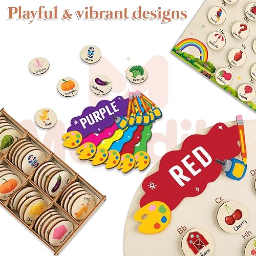 Color Matching & Alphabet Sorting Board, Learning Alphabet for Toddlers, Wooden Interactive Letters ABC Chart for Kids, Learning Colors Recognition Gift for Teachers, Kids Preschool