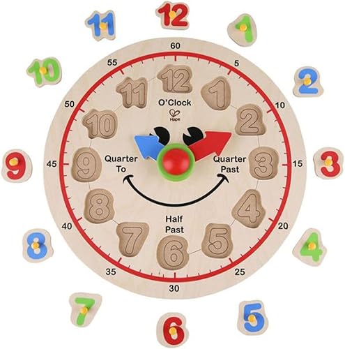 Hape Wooden Colorful Happy Clock Knob Puzzle| Clock Time Learning Educational Toy for Kids