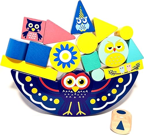 Montessori Animals Stacking and Balance Toy, Wooden Colorful and Cute Owl Blocks, Montessori-Inspired Learning, Educational Learning & Fine Motor Skills, for 3 4 5 6 7 Year Old