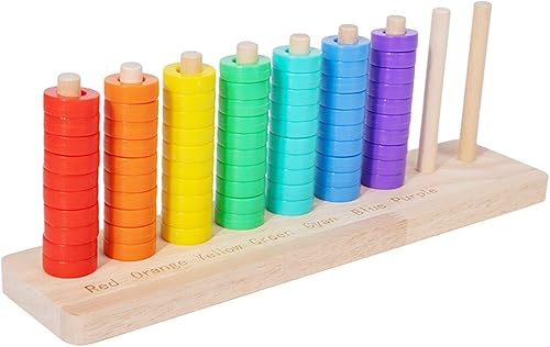 DYNWAVE Wooden Color Sorting Stacking Toys Rainbow Rings Game Color Recognition Sensory Toy Educational for Boys Girls Kids