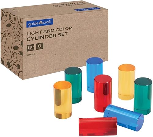 Kaplan Early Learning Light and Color Cylinder Set - 8 Pieces, Translucent Manipulatives, Stackable, Block Play, Light Table Accessories for Toddlers Ages 18+ Months