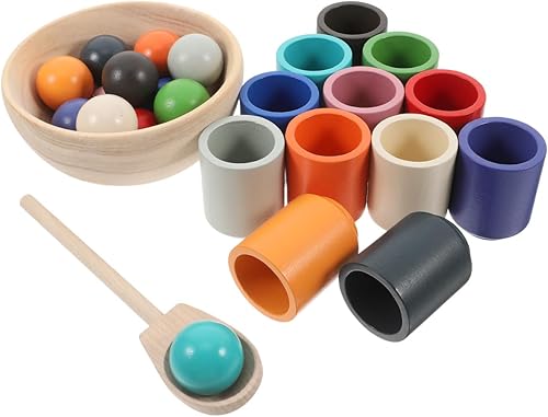 Wooden Sorting Balls and Cups Toy Set for Kids, 12 Assorted Colors, Educational Early Learning Plaything, Synthetic Material