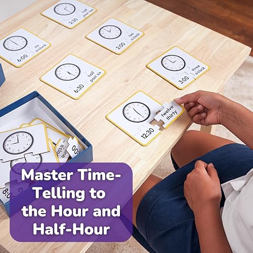 Time Puzzles - 45 PCS Reversible Classroom Clock Puzzles to Learn How to Tell Time to The Half Hour - Teaching Clock Learning for Kids - Telling Time Clock - Kids Clock Learning to Tell Time
