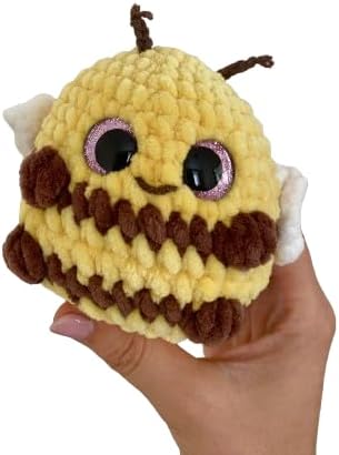 Bee Plush – 4.3" Handmade Crochet Bee Stuffed Animal - Cute Plushies for Bumble Bee Decorations - Bumble Bee Toy for Honey Bee Decor - Bee Small Stuffed Animals