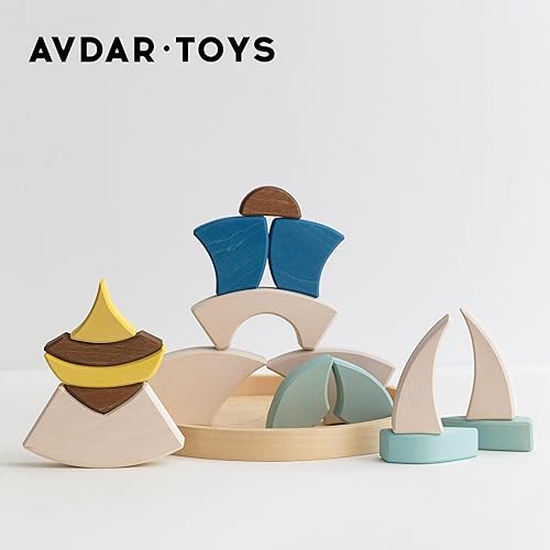 Geometric Wooden Boxes | Blocks Stacker, Stacking & Nesting Educational Tower with Shapes, Pictures of Animals and Numbers for Toddlers