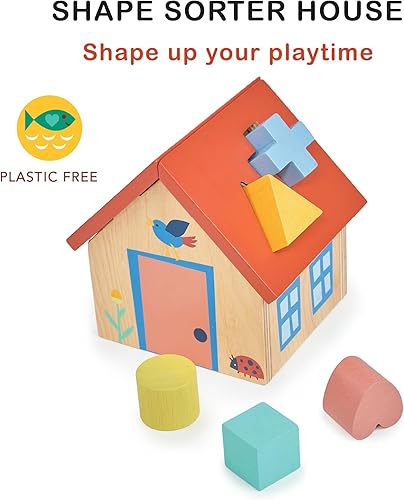 Mentari Toys - Shape Sorter House - Wooden Shape Sorter for Toddlers - Activity Toy with 5 Shapes and Removeable Lid - Boost Fine Motor Skills and Shape Recognition - Educational Toy - Age 12m+
