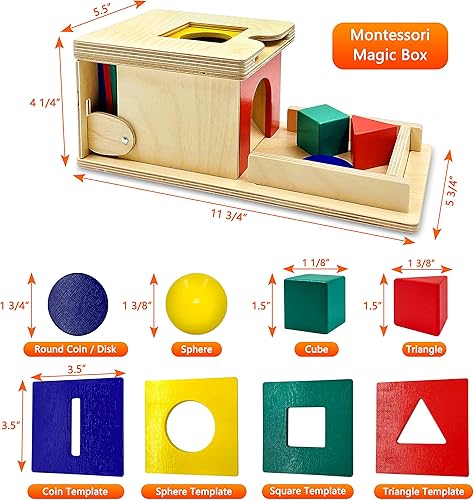 Templeton Montessori Wooden Shape Sorter & Object Permanence Toy with New Stay-Put Swappable Shape Templates
