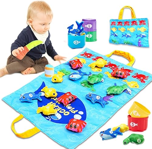 Count Learning Montessori Toys for Toddlers 3 Year Old Cloth Toddler Fishing Game with Stacking Cups,Baby Toy 12-18 Months 1 2 Year Old Boy Girl Gifts (Ocean Animal)