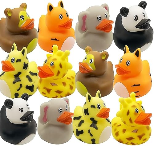 ArtCreativity Zoo Animal Rubber Duckies for Bath – Pack of 12 Cute Safari-Themed Duck Toys for Kids, Fun Bathtub and Pool Toys, Carnival Prizes, and Birthday Party Favors for Boys and Girls